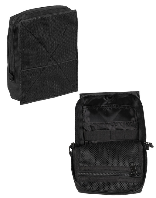 Novitá del collaudato marchio tedesco Mil-tec. Fondina a sgancio rapido di alta qualitá con chiusura posteriore completa di cerniera a secco. La custodia può essere agganciata o sganciata in modo rapido e semplice grazie alla chiusura in velcro. Il lato anteriore é dominato da un'area per le patch, anch'essa fissabile con velcro. Naturalmente, é inclusa una patch con logo Mil-tec. Una tasca più piccola con cerniera, situata sul davanti, serve per riporre piccoli oggetti. Gli oggetti più grandi possono essere riposti nella tasca principale con cerniera a due vie. Nello scomparto interno sono presenti bande elastiche per organizzare gli oggetti più piccoli, oltre a una tasca in rete con cerniera e 2 tasche più piccole.